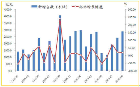 圖表2 三季度新增外匯占款穩(wěn)步上升,熱錢蜂擁進入國內