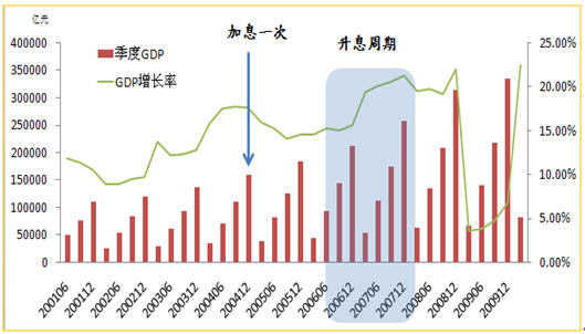 1.一般來講,加息是在GDP穩(wěn)定快速增長過程中進行的。歷史表明,加息可能會產生短 期利空影響,但不改變金融市場和鋼鐵市場的中長期運行趨勢,在加息周期中,鋼價反而是震蕩上行的。我們也發(fā)現(xiàn),在加息周期內,GDP是穩(wěn)步高速增長的,甚 至局部還會出現(xiàn)偏熱。從某種意義上看,加息說明管理層對經濟增長有信心,表明宏觀經濟向好,利好鋼鐵行業(yè)。